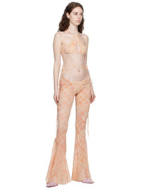 Semi-sheer stretch silk chiffon camisole. Check pattern printed throughout. · Asymmetrical construction · V-neck · Keyhole at chest · Adjustable criss-crossing spaghetti straps · Elasticized strap at open back · Wrap around self-tie strap at back Supplier color: Peach bleach 92% silk, 8% elastane. Made in United Kingdom 231148F073004