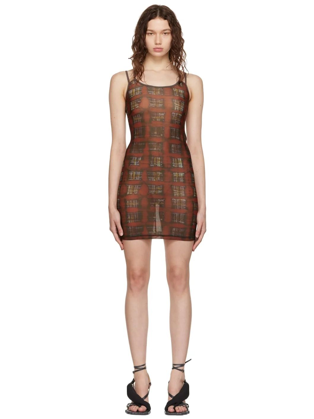 Stretch polyester jersey dress. Graphic pattern printed throughout. · Scoop neck · Adjustable shoulder straps · Racer back Supplier color: Ginger