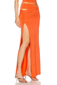 Details - 90% cupro, 10% elastane - Made in United Kingdom - Dry clean only - Unlined - Pull-on styling with elastic waistband - Side cut-out - Lightweight ruched slinky jersey fabric - Item not sold as a set - Our Style No. KNLF-WQ5 - Manufacturer Style No. SS24-PETS0RED