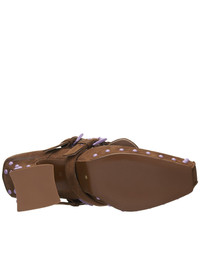KNWLS shoes in brown, platform design, bespoke luxury french cow leather, contrasting metal stud detailing, pointed square toe, front panel with dual buckles & lace up fastening. Made in Italy European Sizing 100% Cow Leather