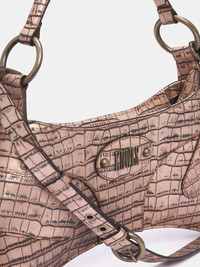 KNWLS handbag in beige, arched & rounded design, paneled leather construction, crocodile embossed pattern, fixed top handle, detachable & adjustable crossbody strap, zip closure, embossed logo, silver-tone hardware, lined. Made in Spain Outer: 100% Cow Leather Inner: 52% Viscose 48% Cotton One Size