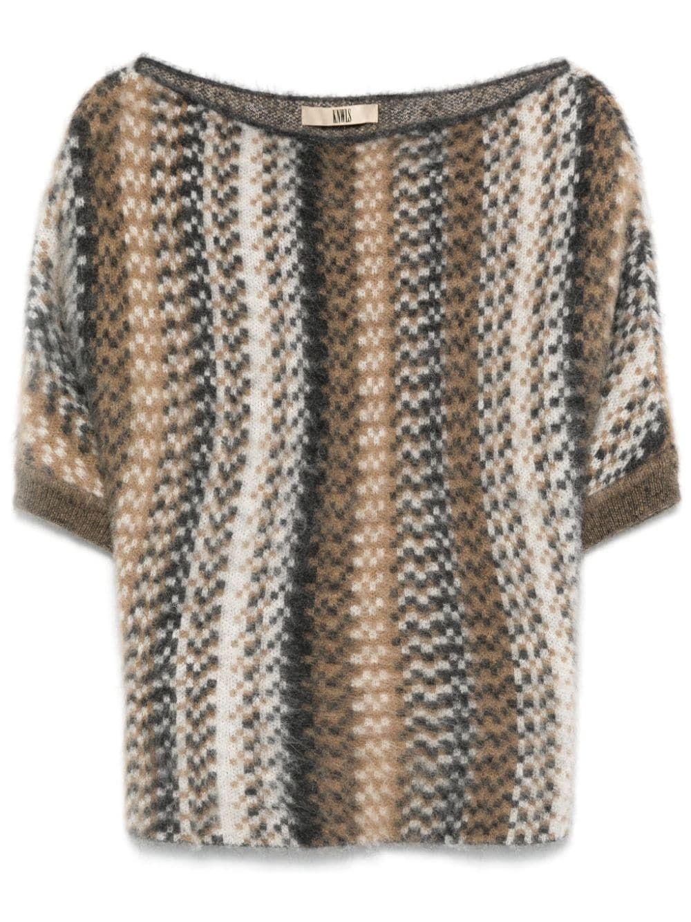 Scale top Highlights - White/black/camel brown - Alpaca wool-blend - Jacquard - Check pattern - Brushed effect - Boat neck - Short sleeves - Straight hem Made in Italy Composition Polyamide 50%, Alpaca Wool 50% SIZE & FIT Model measurements Height 5 ft 9 in(1.75 m) Bust/Chest 30.7 in(78 cm) Hips 34.64 in(88 cm) Waist 23.22 in(59 cm) FittingInformation Designed for a loose fit at the chest with a close fit over the waist and hips Made with a midweight knit, this piece offers some stretch