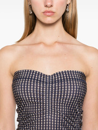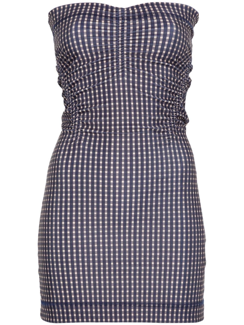 Skinn mini dress Highlights - Prussian blue/pastel yellow - Stretch-jersey - Check pattern - Strapless - Ruched detailing - A-line skirt - Straight hem - Thigh-length Made in Italy Composition Polyester 80%, Elastane 20% SIZE & FIT Model measurements Height 5 ft 9 in(1.75 m) Bust/Chest 30.7 in(78 cm) Hips 34.64 in(88 cm) Waist 23.22 in(59 cm) FittingInformation Designed for a close fit throughout Made from a midweight stretch fabric, this piece offers elasticity and flexibility when worn