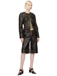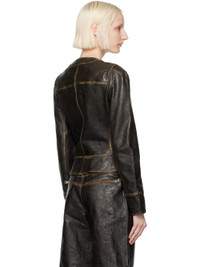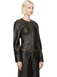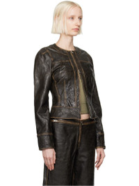 Grained lambskin jacket. Faded edges throughout. · Paneled construction · Round neck · Two-way zip closure · Zip pockets · Logo hardware at hem · Welt pocket at interior · Full viscose-blend twill lining Supplier color: Brown Body: 100% lambskin. Lining: 52% viscose, 48% cotton. Made in Italy 242148F064001