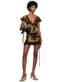 Semi-sheer stretch silk chiffon blouse. Lettuce edges and graphic pattern throughout. · Paneled construction · Plunging V-neck · Lace-up closure · Self-tie lace-up fastening at ruffled cap sleeves Supplier color: Starlight 92% silk, 8% elastane. Made in Italy 231148F107034