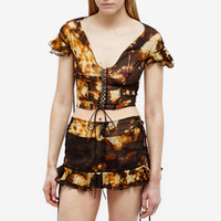 KNWLS looks back to its initial corsetry roots to take inspiration for this Starlight blouse for SS23. This elegant cropped design delicately laces down the chest, tying the top together into a statement style that’ll see you through summer and beyond - whether styled more low-key or paired with the Scallop Flippy skirt for an elevated co-ord. - 92% Silk, 8% Elastane - Tie Closure