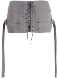 strap-detail lace-up miniskirt Highlights - Grey - Low-rise - Front lace-up fastening - Strap detailing - Concealed rear zip fastening - Thigh-length - Straight hem Made in United Kingdom Composition Outer: Polyethylene 96%, Polyurethane 4% Lining: Acetate 68%, PBT Elite 32% SIZE & FIT Model measurements Height 5 ft 10 in(1.77 m) Bust/Chest 30.3 in(77 cm) Hips 33.9 in(86 cm) Waist 25.2 in(64 cm) FittingInformation This mini-length skirt is intended to be worn low on the hips Slightly short in length; consider your own measurements Made from a midweight non-stretch fabric, this piece offers minimal elasticity when worn This piece fits close in all sizes – take your usual size