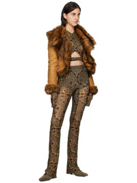 Semi-sheer stretch polyester jersey blouse. Graphic pattern printed throughout. · Layered construction · Criss-crossing straps at front · Cutout at armscyes and elasticized hem Supplier color: Thorny green 84% polyester, 16% elastane. Made in Italy 222148F107005