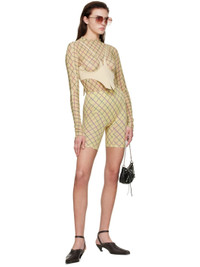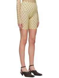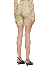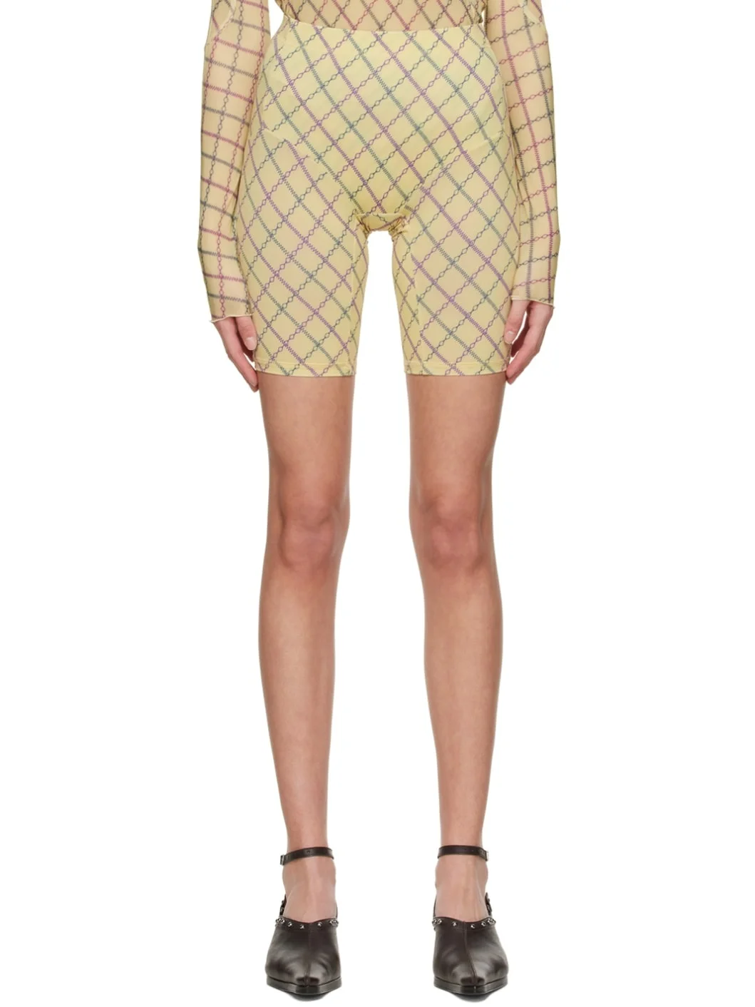 Stretch polyester jersey shorts. Graphic pattern printed throughout. · Elasticized waistband · Overlock stitching throughout · Partially lined Supplier color: Yellow chain argyle 75% polyester, 25% elastane. Made in Italy 221148F088005