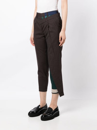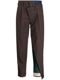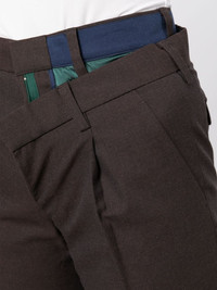 high-waisted cropped trousers Highlights - Brown - Deconstructed design - Double layer - High waist - Belt loops - Slip pockets to the sides - Rear welt pocket - Rear flap pocket - Cropped leg Imported Composition Inner: Rayon 49%, Cotton 31%, Wool 20% Outer: Wool 100% Body: Polyester 100% Cotton 100% Lining: Polyester 100% SIZE & FIT Model measurements Height 5 ft 10 in(1.77 m) Bust/Chest 28.74 in(73 cm) Hips 35.82 in(91 cm) Waist 24.4 in(62 cm) FittingInformation Designed for a tapered fit, these trousers allow for a close fit at the waist and a loose unrestricted fit over the leg with a closer fit towards the ankle Made from a midweight non-stretch fabric This piece fits true to size – take your usual size