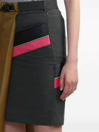 asymmetric panelled mini skirt Highlights - Golden brown - Multicolour - Panelled design - Asymmetric design - Draped design - Belted waist - Concealed side zip fastening - Above-knee length Imported Composition Nylon 42%, Polyurethane 36%, Polyester 22% Washing instructions Read Manufacturer Guidelines