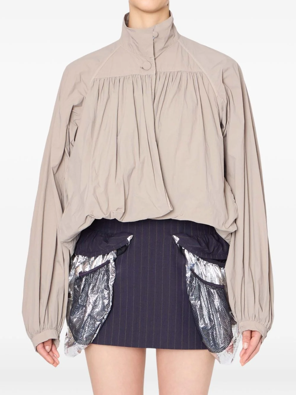 balloon-sleeves jacket Highlights - Neutrals - Balloon sleeves - Button fastening - High neck - Elasticated hem Imported Composition Fabric 100% Washing instructions Read Manufacturer Guidelines