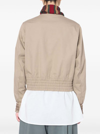 beaded-cuff cropped jacket Highlights - Beige - Elasticated waistband - Beaded embellishment - Striped knitted scarf - Front zip fastening - Long sleeves Imported Composition Cotton 100% Washing instructions Read Manufacturer Guidelines