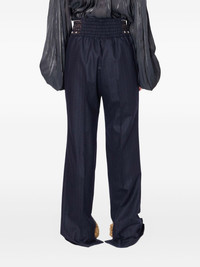 beaded pinstripe trousers Highlights - Navy blue - Pinstripe pattern - Beaded waistband - Elasticated waistband - Hook-and-eye fastening - Side pockets Imported Composition Wool 93%, Nylon 6%, Fabric 1% Washing instructions Read Manufacturer Guidelines