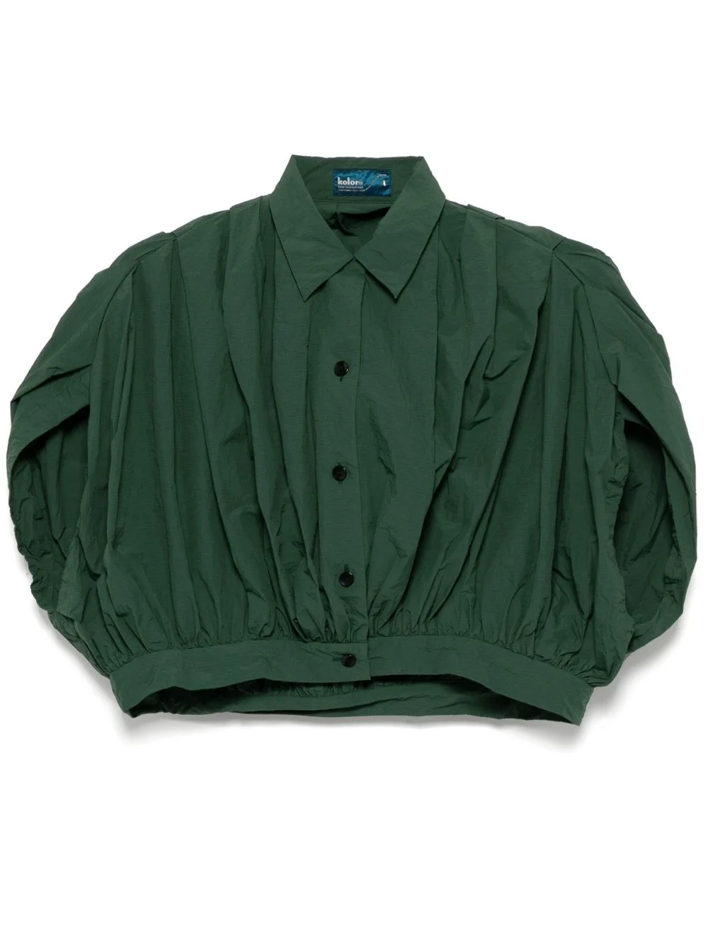 button-up top Highlights - Dark green - Front button fastening - Draped design Imported Composition Nylon 100% Washing instructions Hand Wash