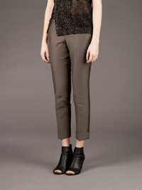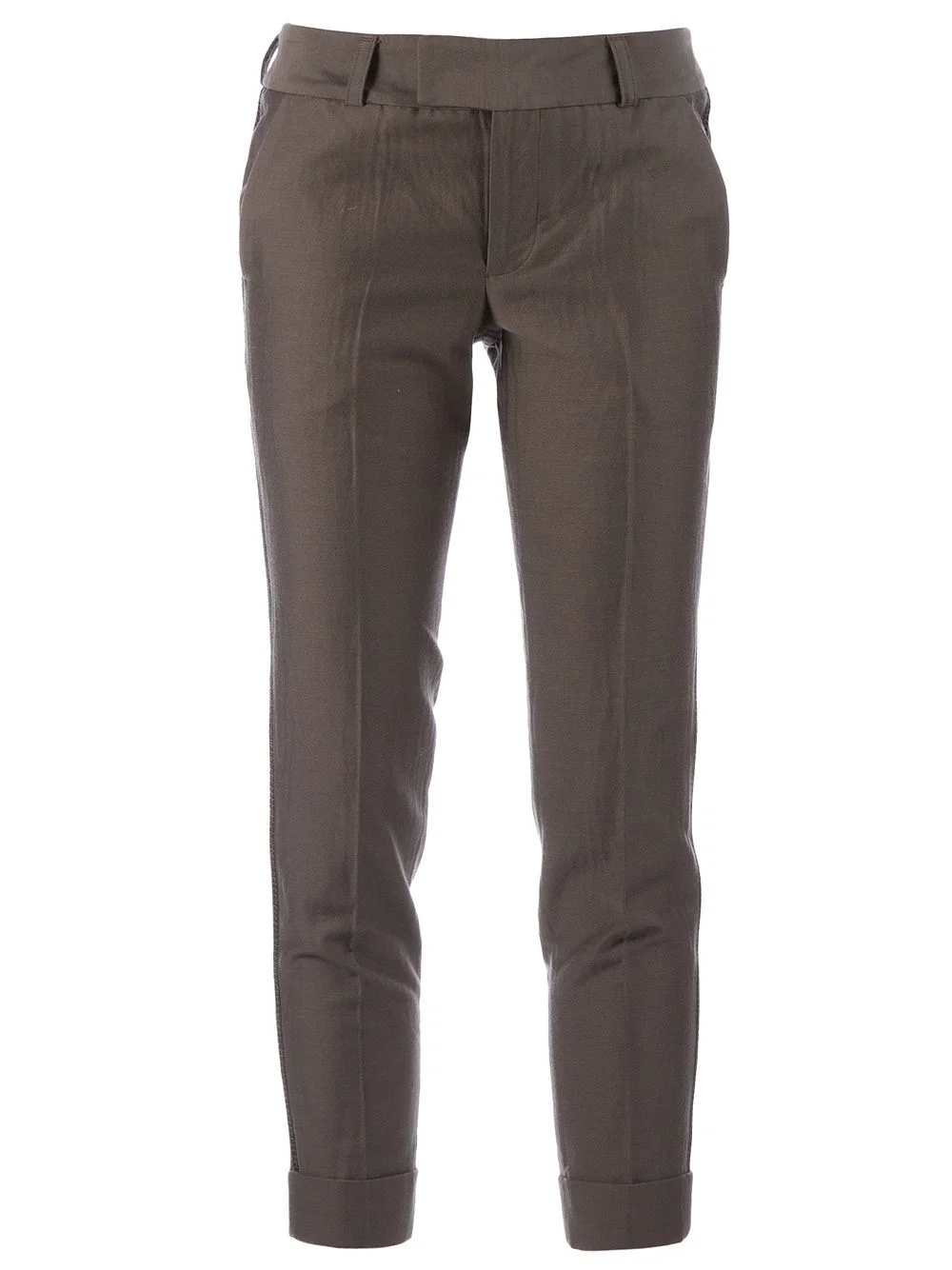 contrast cropped trouser Brown cotton blend trouser from Kolor featuring a concealed front fastening, contrasting green piping to the side of the legs, belt loops to the waist, two inset pockets to the front and a cropped leg with turn-up cuffs. Imported Composition Viscose 100%, Cotton 74%, Silk 18%, Nylon 8% Washing instructions Dry Clean Only