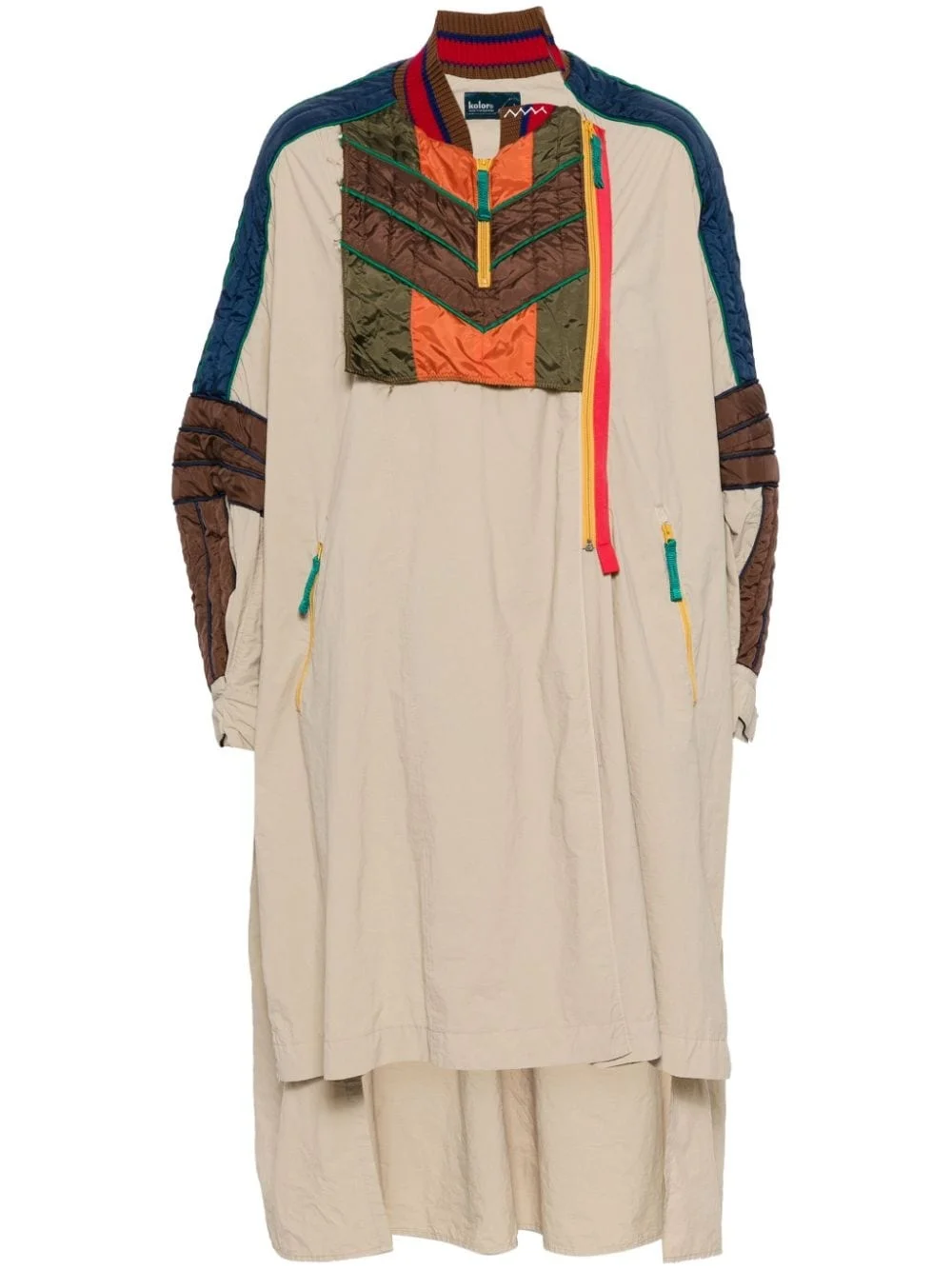 contrasting-panel asymmetric coat Highlights - Light brown/multicolour - Contrasting panel detail - Asymmetric neck - Front zip fastening - Long wide sleeves - Touch-strap cuffs - Two side zip-fastening pockets - High-low hem Imported Composition Nylon 100% SIZE & FIT Model measurements Height 5 ft 9 in(1.75 m) Bust/Chest 31.88 in(81 cm) Hips 35.03 in(89 cm) Waist 23.22 in(59 cm) FittingInformation Designed for an oversized fit, offering additional room throughout Made from a midweight non-stretch fabric This piece fits true to size – take your usual size