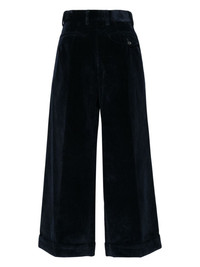 corduroy pleat-detail trousers Highlights - Navy blue - Cotton blend - Corduroy - Pleat detailing - Concealed front button, hook and zip fastening - Belt loops - Two side slash pockets - Rear flap pocket - Rear jetted pocket - Straight hem Imported Composition Outer: Cotton 49%, Polyester 27%, Wool 22%, Polyurethane 2% Lining: Polyester 100% Washing instructions Dry Clean Only