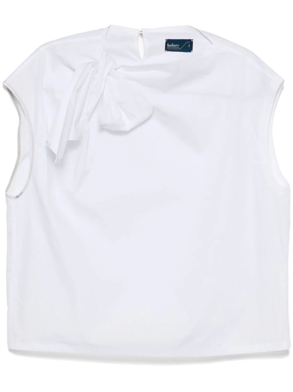 cotton top Highlights - White - Rear button fastening - Contrast stitching - Straight hem Imported Composition Cotton 100%