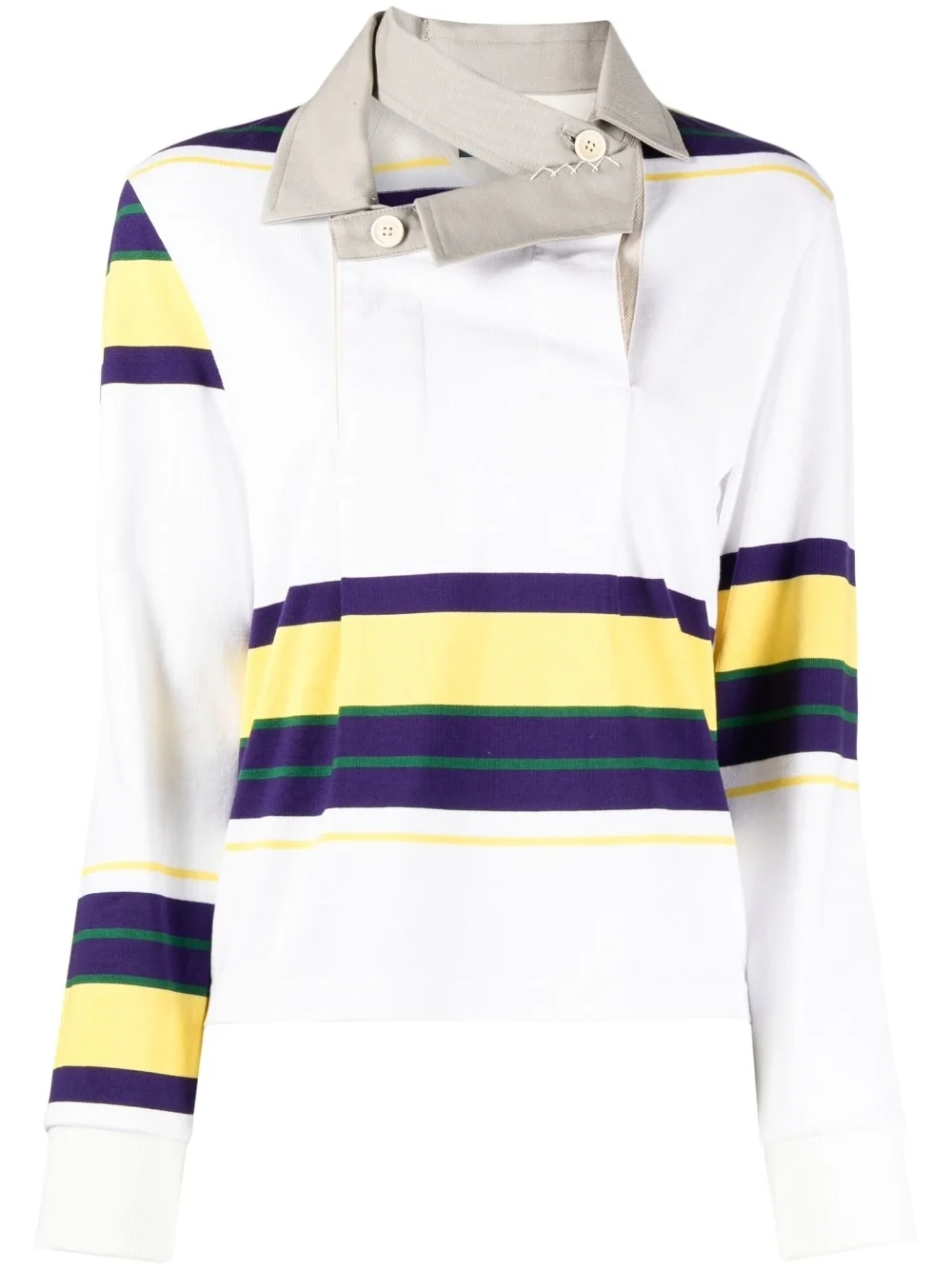 deconstructed collar striped sweatshirt cloud white/multicolour cotton horizontal stripe pattern deconstructed collar design button fastening long sleeves straight hem Imported Composition Cotton 100% SIZE & FIT Model measurements Height 5 ft 10 in(1.77 m) Bust/Chest 31.49 in(80 cm) Hips 35.43 in(90 cm) Waist 25.19 in(64 cm) FittingInformation Designed to be unstructured, offering a loose fit throughout Made from a midweight non-stretch fabric, this piece offers minimal elasticity when worn This piece fits true to size – take your usual size Washing instructions Hand Wash