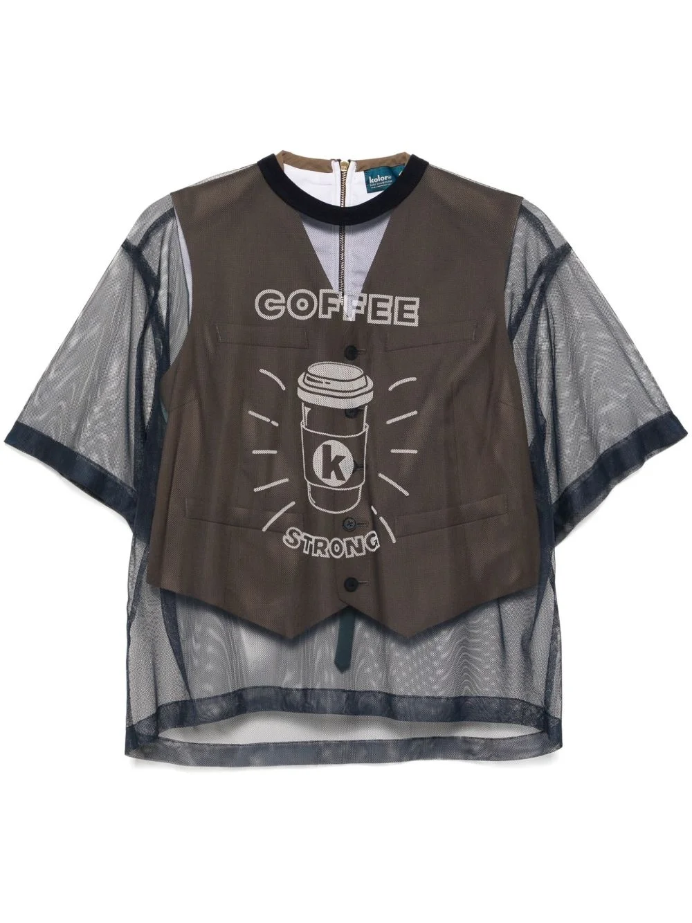 graphic-print top Highlights - Navy blue - Rear zip fastening - Semi-sheer construction Imported Composition Polyester 100% Outer: Wool 100% Lining: Cotton 100% Washing instructions Dry Clean Only