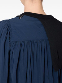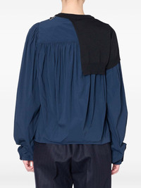 knitted-panel balloon-sleeve top Highlights - Dark-blue - Balloon sleeves - Gathered detailing - Button fastening - Black-knitted panel - Asymmetric design Imported Composition Nylon 100% Washing instructions Read Manufacturer Guidelines