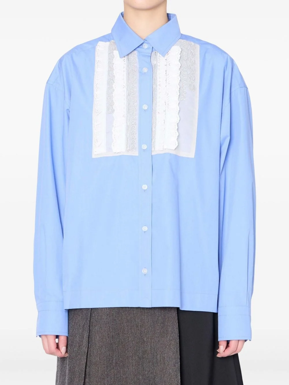 lace-panelled shirt Highlights - Light blue - Lace inserts - Button fastening - Long sleeves - High collar Imported Composition Fabric 100% Washing instructions Read Manufacturer Guidelines