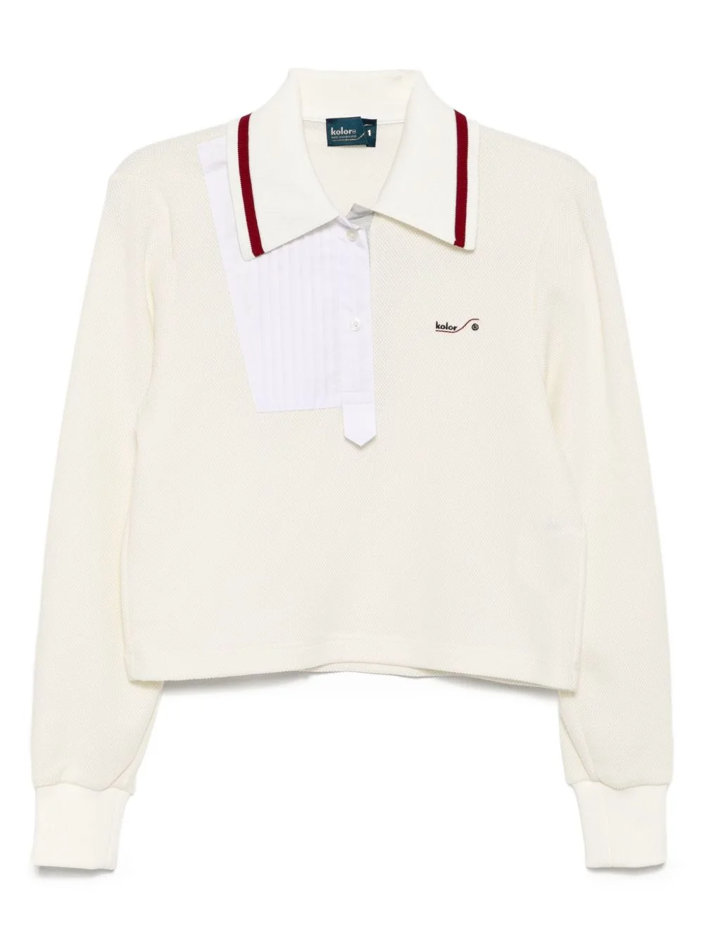 logo-embroidered polo top Highlights - Ivory - Front button fastening - Ribbed cuffs - Long sleeves Imported Composition Polyester 53%, Cotton 47% Washing instructions Hand Wash