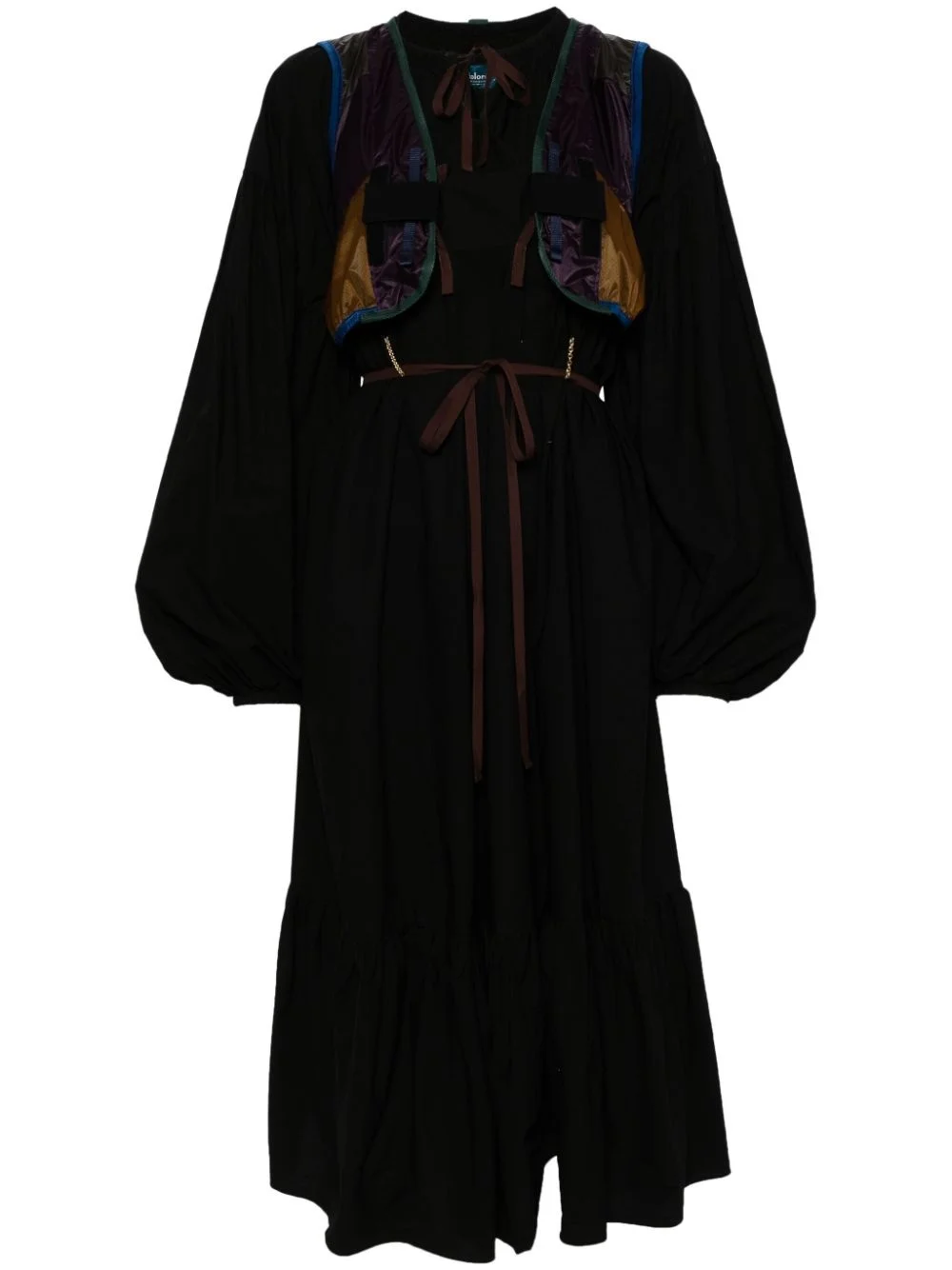 panelled drawstring dress Highlights - Black/multicolour - Cotton - Colour-block panelled design - Round neck - Front lace-up fastening - Drawstring waist - Balloon sleeves - Tiered skirt - Straight hem - Mid-length Imported Composition Cotton 100% Trims: Cotton 100%