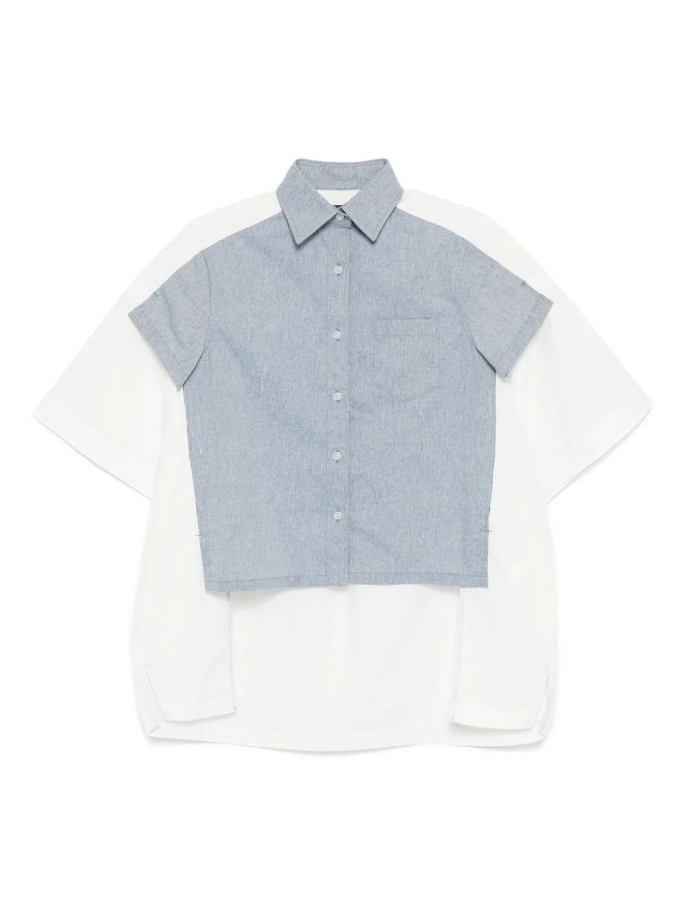 panelled shirt Highlights - Blue/white - Front button fastening - Chest patch pocket - High-low hem Imported Composition Cotton 55%, Polyester 45% Washing instructions Hand Wash