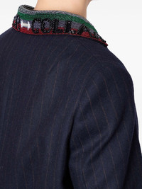 pinstripe beaded-collar single-breasted coat