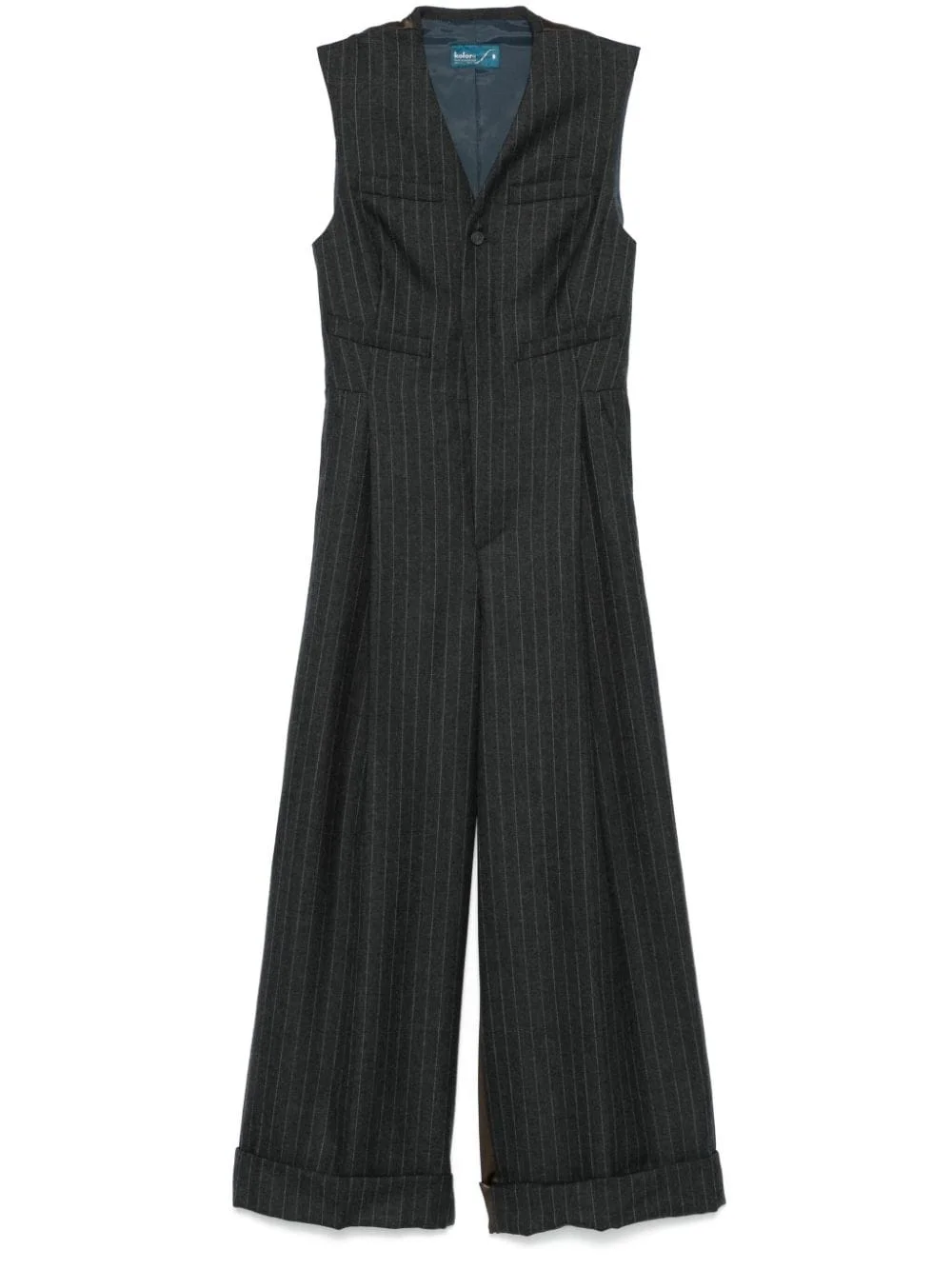pinstripe jumpsuit Highlights - Charcoal grey - Wool - Satin panels - Pinstripe pattern - Front button placket - V-neck - Sleeveless - Chest welt pocket - Two diagonal pockets to the sides - Pleat detailing - Pressed crease - Turn-up hem Imported Composition Outer: Wool 100%, Triacetate 89%, Polyester 11% Lining: Polyester 100% SIZE & FIT Model measurements Height 5 ft 9 in(1.75 m) Bust/Chest 31.88 in(81 cm) Hips 34.64 in(88 cm) Waist 24.01 in(61 cm) FittingInformation Designed for a relaxed fit, this piece allows for comfort and movement when worn Made from a midweight non-stretch fabric