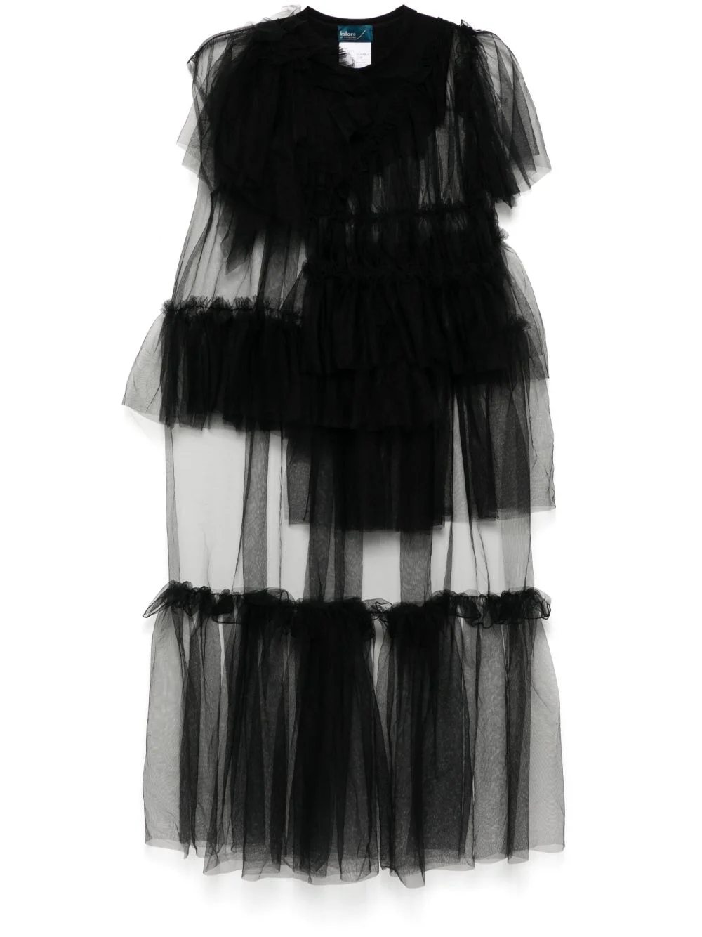 ruffle top Highlights - Black - Sleeveless - Semi-sheer construction - High-low hem Imported Composition Nylon 100% Washing instructions Dry Clean Only