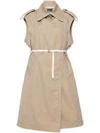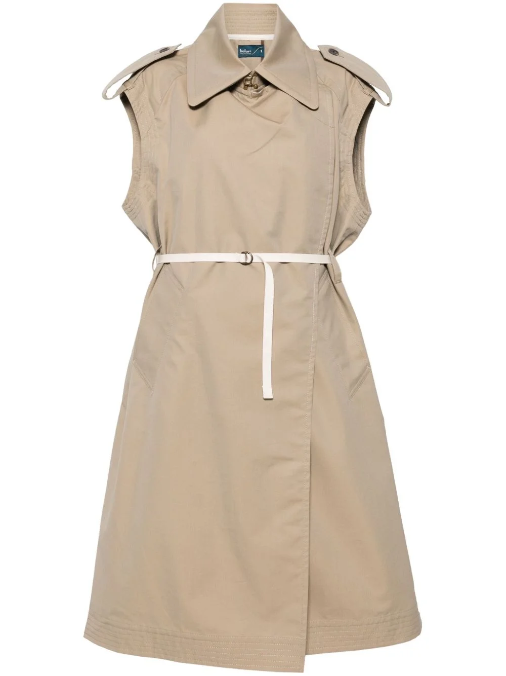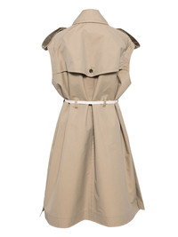 sleeveless coat Highlights - Light brown - Front hook and eye fastening - Detachable and adjustable waist belt - Belt loops - Two side welt pockets Imported Composition Cotton 62%, Polyester 38%