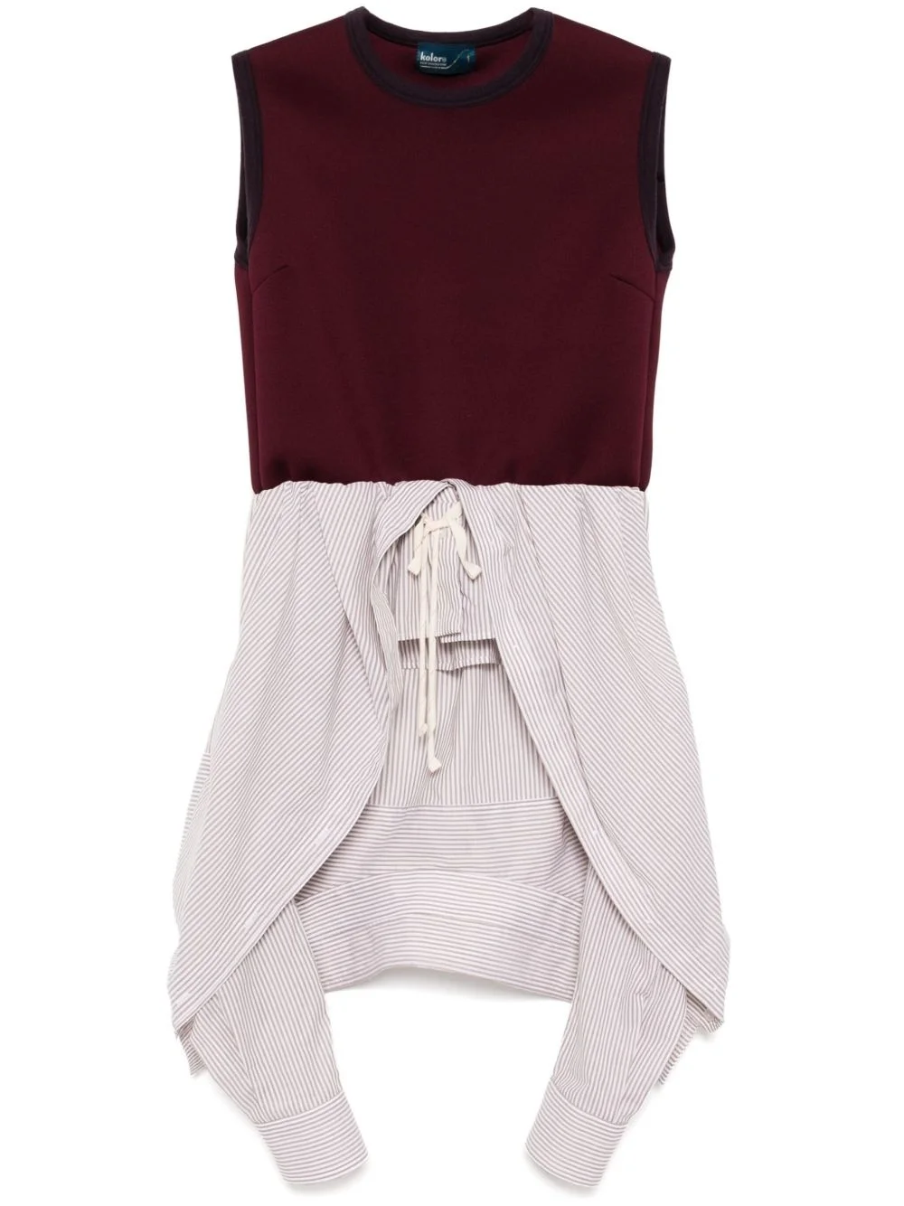 sleeveless top Highlights - Bordeaux red - Crew neck - Panelled design - Drawstring waist Imported Composition Lining: Polyester 93%, Polyurethane 7% Outer: Cotton 100% Washing instructions Hand Wash