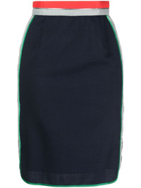 stripe-waistband knee-length skirt Highlights - Navy blue/red/grey - Wool blend - High-waisted - Stripe trim - Concealed rear zip fastening - Rear slit - Knee-length - Straight hem Imported Composition Body: Polyester 62%, Wool 33%, Polyurethane 4% Lining: Polyester 100% Washing instructions Dry Clean Only