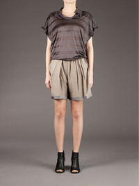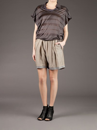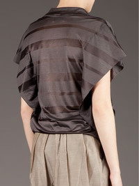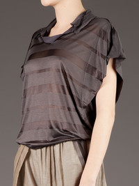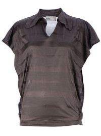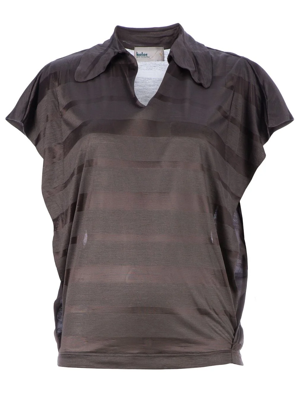 striped open collar blouse Dark grey blouse from Kolor featuring an open collar, contrasting textured horizontal stripes and a wide capped sleeves. Imported Composition Viscose 100% Washing instructions Dry Clean Only
