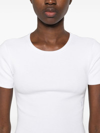 Arise T-shirt Highlights - White - Cotton blend - Fine ribbed - Crew neck - Short sleeves - Embroidered logo to the side and to the rear - Seam detailing to the rear - Straight hem Imported Composition Cotton 98%, Spandex/Elastane 2% SIZE & FIT Model measurements Height 5 ft 11 in(1.8 m) Bust/Chest 32.67 in(83 cm) Hips 36.22 in(92 cm) Waist 24.4 in(62 cm) FittingInformation Designed for a close fit throughout Made from a midweight stretch fabric, this piece offers elasticity and flexibility when worn
