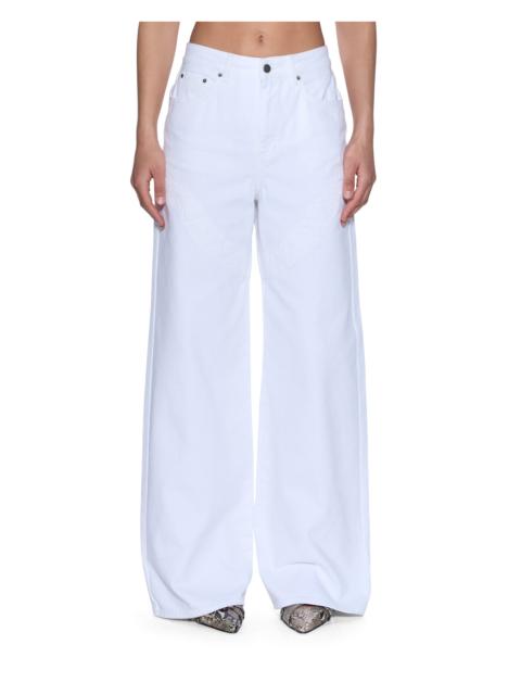 The Barrel Jean Cargo Fresh is a mid-rise, relaxed-fit jean with a distinctive barrel-shaped leg that tapers at the ankle. Made from premium European rigid denim in fresh white with tonal topstitching, it features side-facing 3D cargo pockets, curved western-inspired panel lines on the front and back thighs, Ksubi branded hardware, T-box and 3x4 embroidery, and a removable pocket tag on the wearerOs right back pocket, designed for a flattering, sculptural silhouette. Style back with the Trucker Vest Fresh for an all-white elevated look. FEATURES, SIZE & FIT - Barrel shape silhouette, mid-rise, zip fly - Classic five pocket styling, full length - Cargo pockets, T-box branding, back 3x4 cross embroidery - Signature woven pocket tag, branded hardware - No stretch, 100% cotton - Size 26 inseam: 75cm / 29 1/2", front rise: 30cm / 11 3/4" - Model is wearing a size 26/S, height 179cm / 5'9", bust 76cm, waist 61cm, hip 94cm - Care: Machine wash cold with like colours, do not tumble dry, do not bleach, cool iron if necessary - Product code: WPS26DJ021