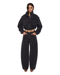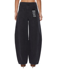 The Barrel Jean Carpenter Black is a a mid-rise, relaxed fit with a distinctive barrel-shaped leg that tapers at the ankle. Made from premium black overdyed nailhead canvas with a soft stone wash and subtle signs of wear, it includes front carpenter patches with rivets, classic five-pocket styling, anti-silver Ksubi branded hardware, T-box and 3x4 embroidery, and a removable pocket tag attached to the wearer's right back pocket. Designed to offer a flattering and sculptural silhouette to any wardrobe. FEATURES, SIZE & FIT - Distinctive barrel shape silhouette - Mid-rise - Zip fly - Classic five pocket styling - Full length - T-box branding - 3x4 cross embroidery - Signature woven pocket tag - Branded hardware - No stretch - 100% cotton - Size 26 inseam: 75cm / 29 1/2" - Size 26 front rise: 30cm / 11 3/4" - Model is wearing a size 26/S, height 178cm/5'10", bust 80cm, waist 62.5cm, hip 92cm - Machine wash cold, with like colors. Do not tumble dry, do not bleach, cool iron if necessary. - WSP25DJ036