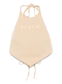 Bolt halter-neck tie top Highlights - Oat - Halter neck - Tie front - Cotton - Logo lettering - Straight hem Imported Composition Cotton 100% Washing instructions Hand Wash