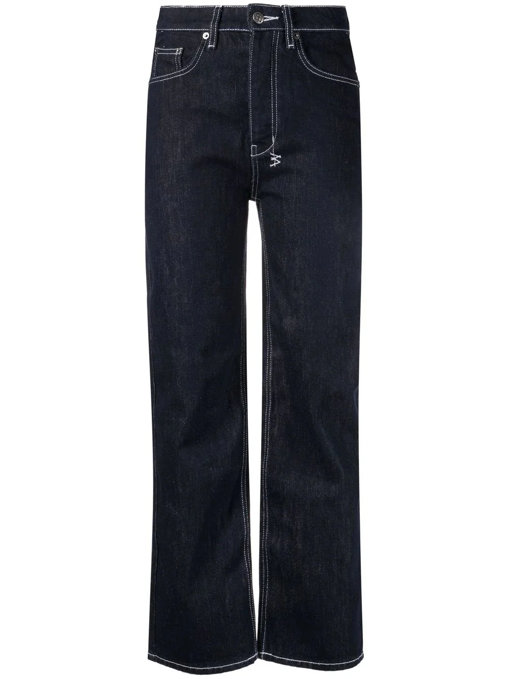Brooklyn Zenith cropped jeans navy blue cotton front button fastening two diagonal pockets to the sides two rear patch pockets cropped leg Imported Composition Cotton 100% SIZE & FIT Model measurements Height 5 ft 10 in(1.79 m) Bust/Chest 31.49 in(80 cm) Hips 35.03 in(89 cm) Waist 23.62 in(60 cm) FittingInformation This piece fits true to size. We recommend you get your regular size Cut for a slim fit Made with a mid-weight non-stretch fabric Washing instructions Machine Wash