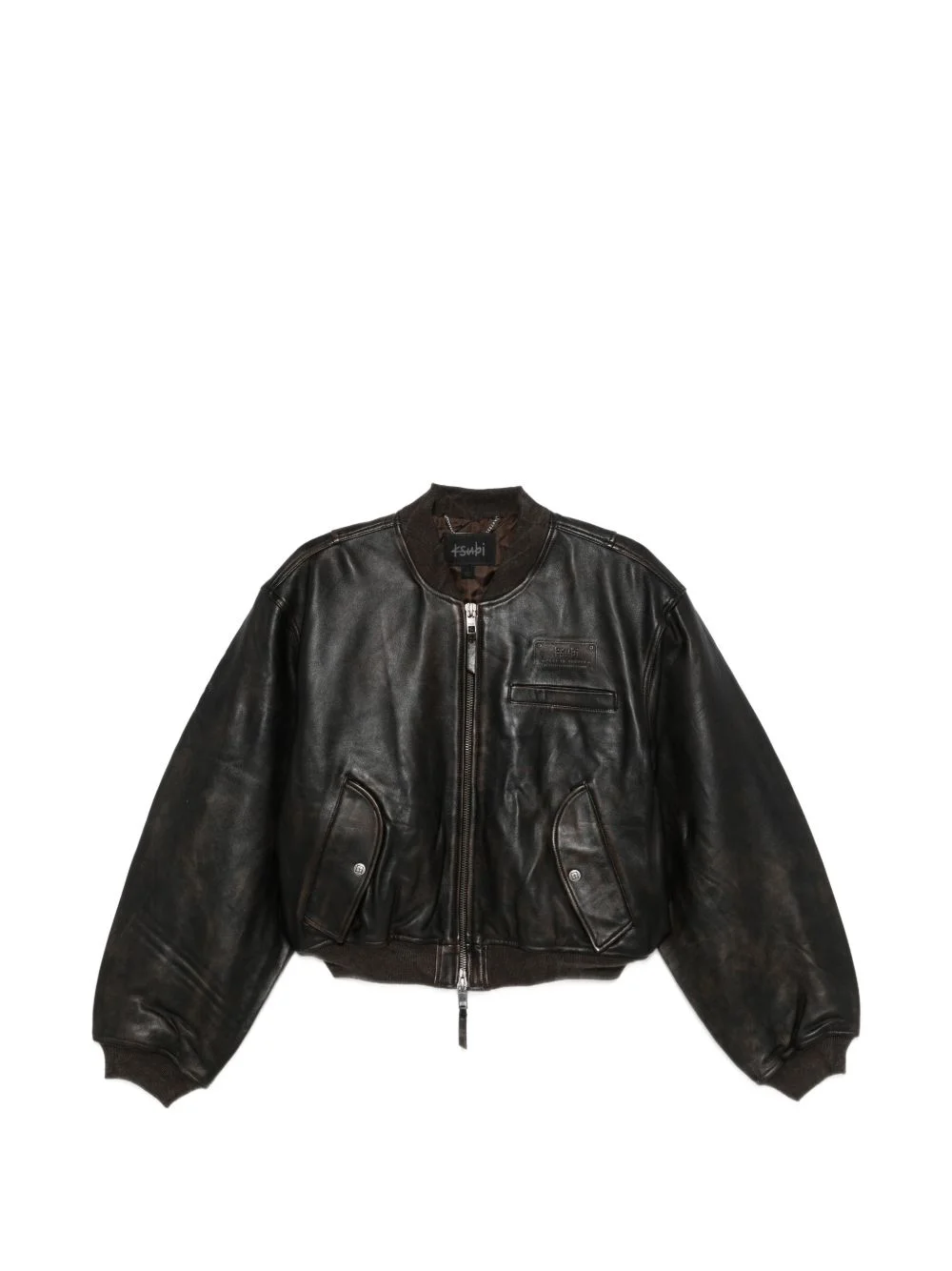 cropped bomber jacket Highlights - Black - Leather - Zip fastening - Long sleeves - Ribbed hem - Ribbed cuffs Imported Composition Outer: Lambskin 100% Lining: Polyester 100% Washing instructions Dry Clean Only