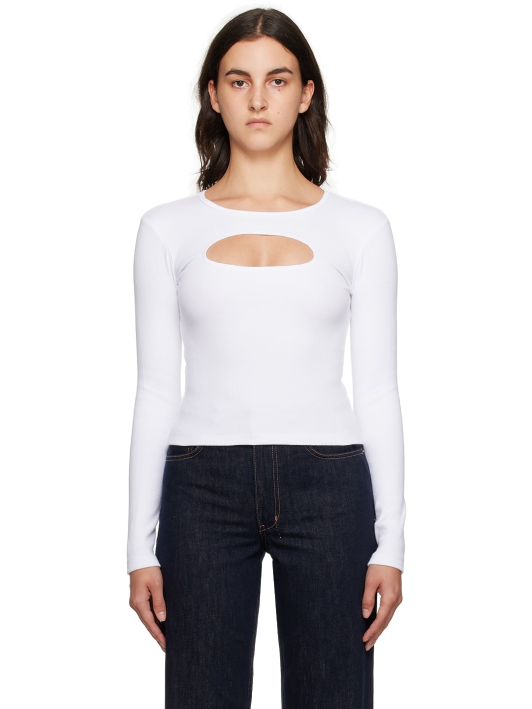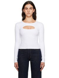 Rib knit stretch cotton T-shirt. · Crewneck · Cutout at chest · Logo embroidered at back collar · Logo embroidered at back hem Supplier color: White