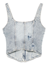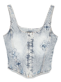 Gigi Klassic Kraftwerk denim bustier top Highlights - Light blue - Acid wash - Cross embroidery - Sleeveless - Straight neckline - Front hook-and-eye closure Imported Composition Cotton 100% Washing instructions Machine Wash