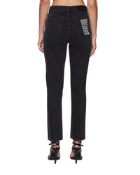 The Pin Up Straight Jean Black is a mid-rise, slim straight, crop-length silhouette designed as an everyday go-to jean. Crafted from premium rigid denim in washed black with an ultra-soft handfeel and tonal topstitching, the style features subtle grinding at the waistband, hem, and pocket edges, along with classic five-pocket styling, anti-silver Ksubi branded hardware, signature T-box and 3x4 embroidery, and a removable pocket tag. FEATURES, SIZE & FIT - Slim-straight leg denim jean with mid rise - Zip fly closure - Classic five pocket styling with regular length - T-box branding - Back 3x4 cross embroidery - Signature woven pocket tag - Branded hardware - No stretch, 100% cotton - Size 26 waist circumference: 76cm, low hip: 94cm, hem: 37cm, front rise: 27.5cm, inleg: 71cm - Model is wearing a size 26/S, height 179cm/5'9", bust 76cm, waist 61cm, hip 94cm - Care: Cool machine wash with like colours, wash inside out, do not bleach, remove promptly after wash, do not tumble dry, cool iron on reverse, do not iron directly onto prints or metal hardware, colour may transfer onto other garments and upholstery