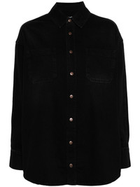 press-stud cotton shirt Highlights - Black - Cotton - Denim - Classic collar - Drop shoulder - Long sleeves - Buttoned cuffs - Two chest patch pockets - Curved hem - Logo-debossed buttons - Front press-stud fastening Imported Composition Cotton 100% Washing instructions Machine Wash