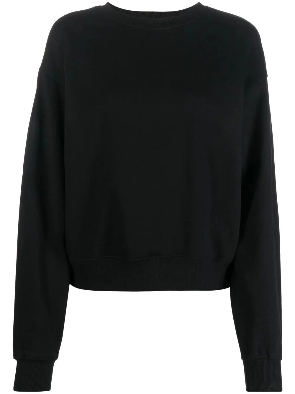 relaxed-cut round-neck jumper jet black cotton drop shoulder round neck long sleeves straight hem Imported Composition Cotton 100% SIZE & FIT Model measurements Height 5 ft 10 in(1.77 m) Bust/Chest 32.28 in(82 cm) Hips 36.22 in(92 cm) Waist 24.4 in(62 cm) FittingInformation This piece fits true to size. We recommend you get your regular size Cut for a loose fit Made with a mid-weight fabric Washing instructions Hand Wash