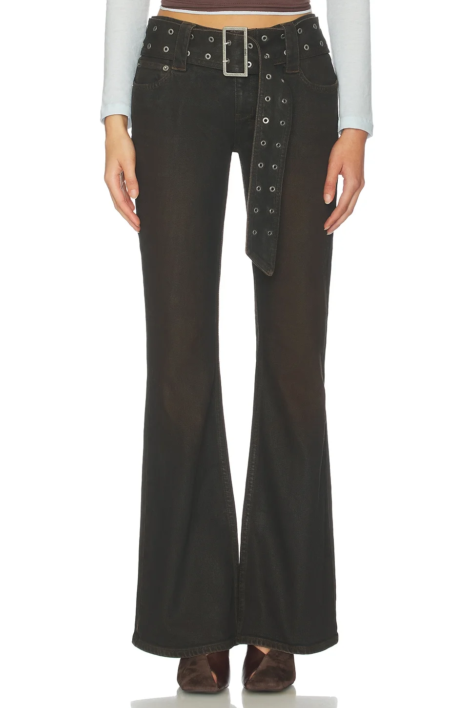 - Denim-textile - Imported - Dry clean recommended - Zip fly with button closure - Large belt with buckle closure and metal grommets - Flare leg styling.20" at leg opening - Revolve Style No. KSUB-WJ89 - Manufacturer Style No. WPS26DJ028