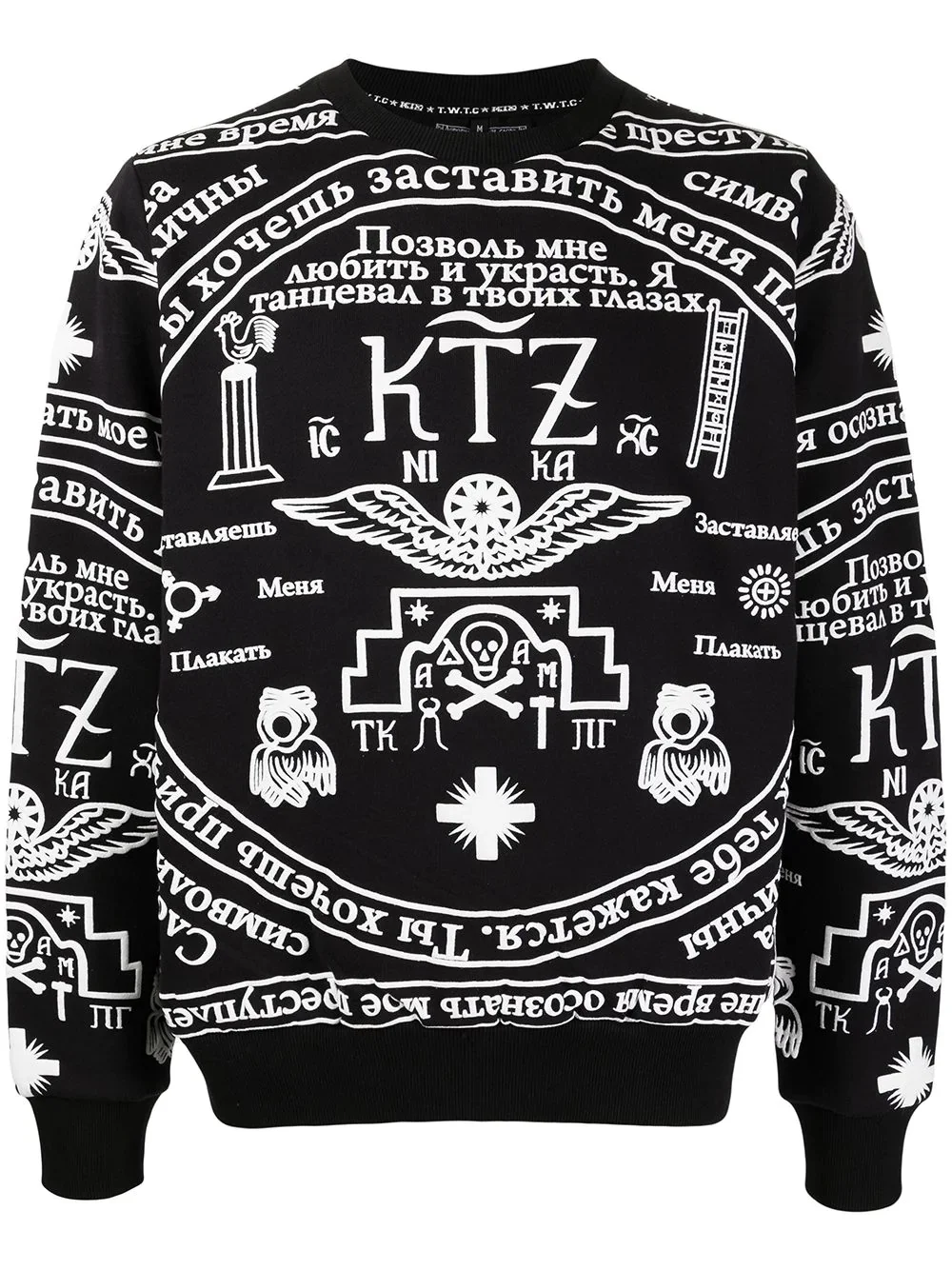 church print sweatshirt black/white cotton all-over graphic print round neck long sleeves straight hem Imported Composition Cotton 100% SIZE & FIT Model measurements Height 5 ft 10 in(1.79 m) Bust/Chest 32.28 in(82 cm) Hips 35.43 in(90 cm) Waist 24.01 in(61 cm) FittingInformation This piece is unisex. Please take care when selecting your size Designed for a loose fit for men and an oversized fit for women Made with a mid-weight fabric Washing instructions Machine Wash